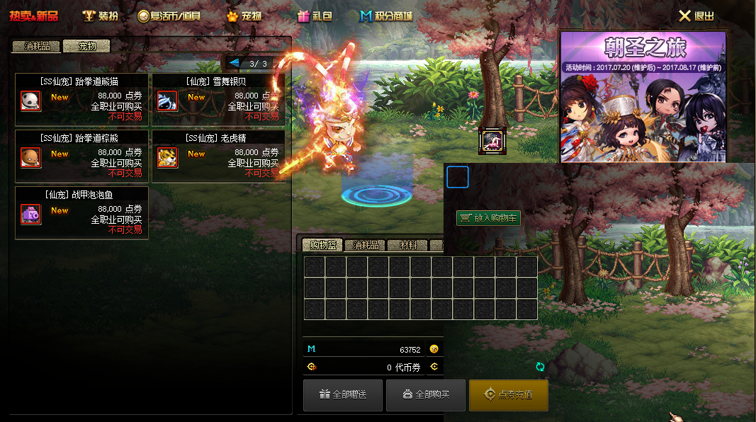 魔盒可以开出很多道具、稀有时装、皮肤在点券商城积分购买、宠物也在商城宠物栏点券购买