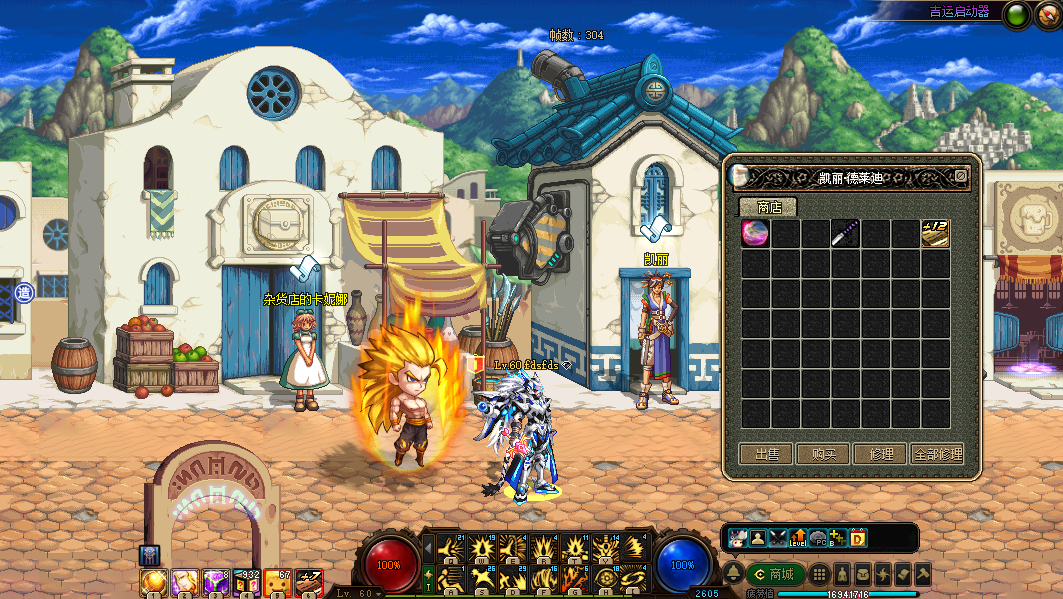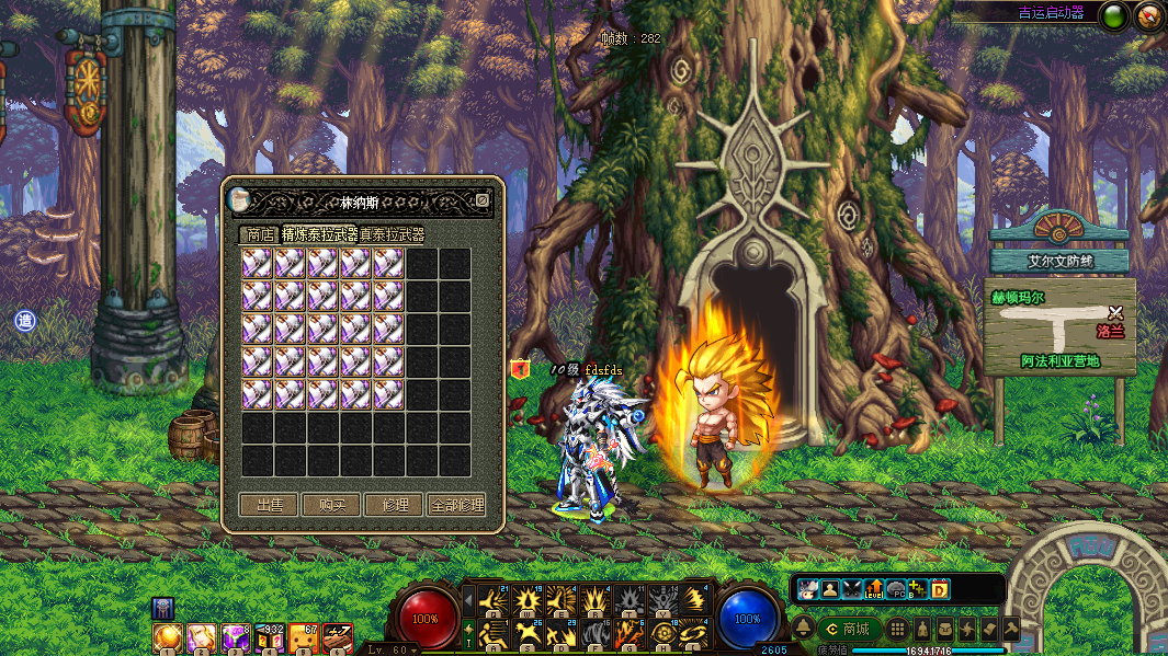 装备默认为刷深渊爆的紫、粉、史诗、武器为林纳斯NPC商店的泰拉武器